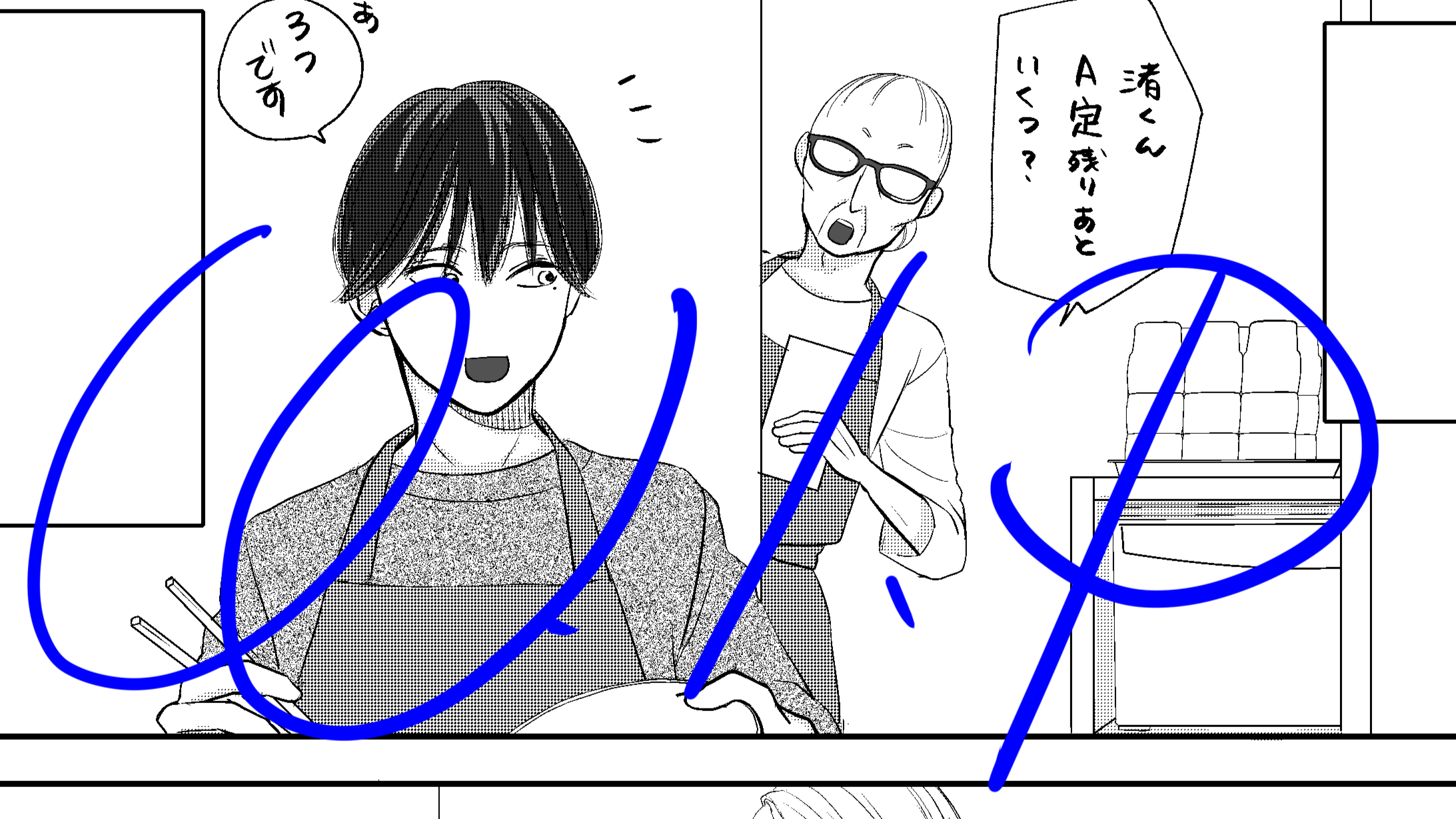 メガネの人は新しい登場人物の鈴木さん(バイト、ばあちゃんが店をしていた時に手伝ってくれていた縁で応援に来てくれている)です